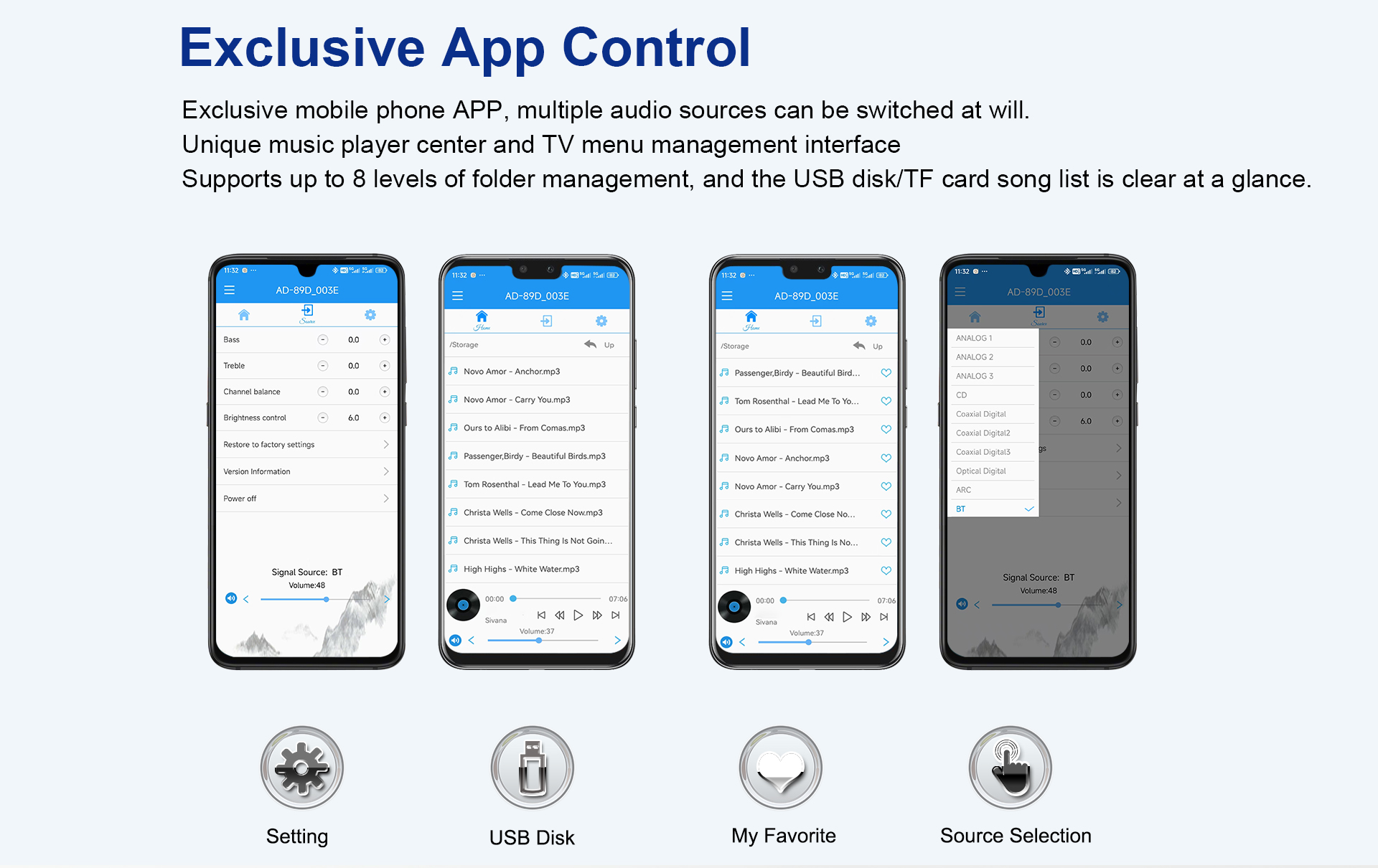 Obsługuje dyski flash USB o pojemności 128 GB i karty TF oraz formaty APE, FLAC, WAV, MP3, WMA.