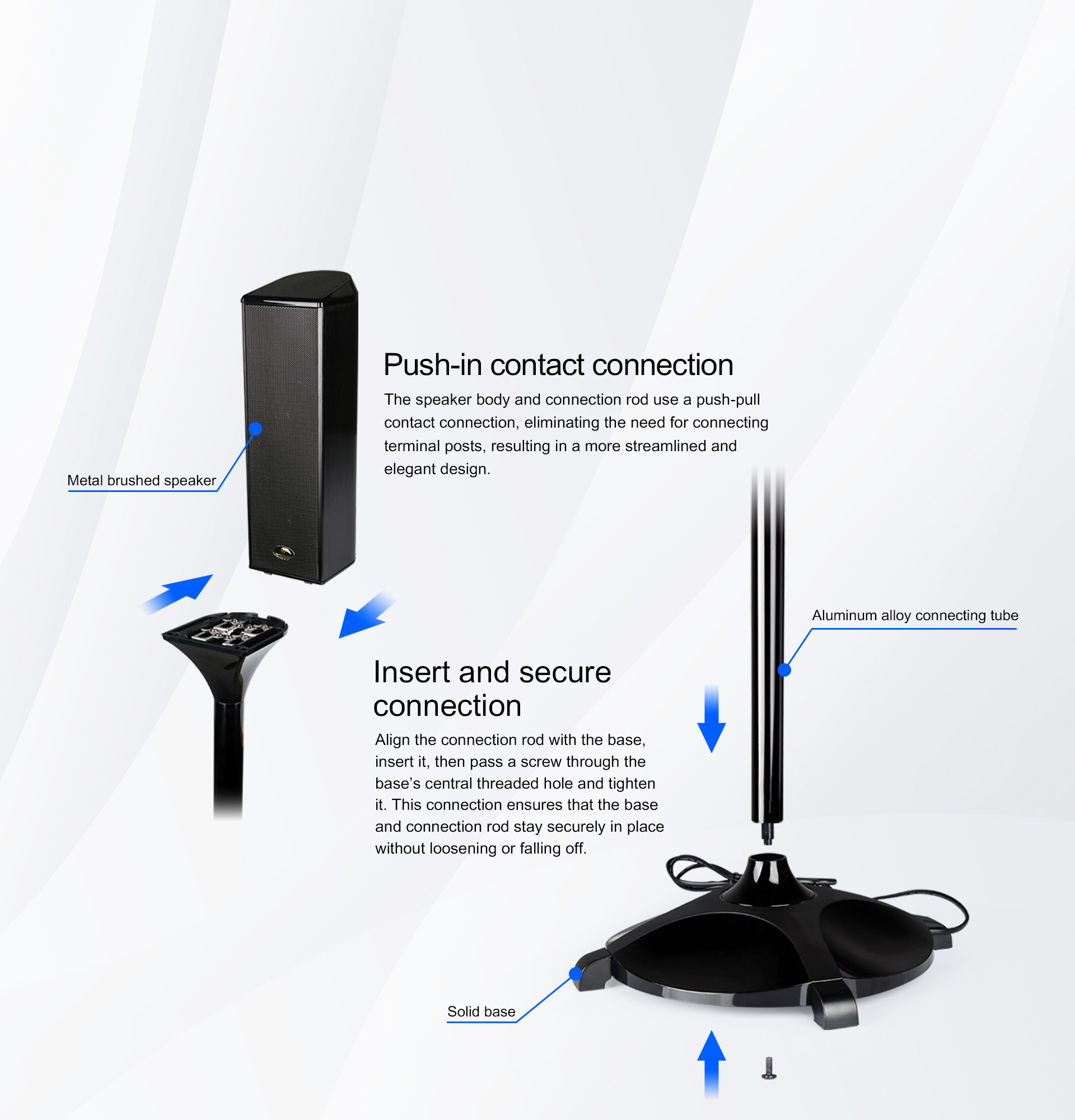 Każdy głośnik został ustawiony pod precyzyjnym kątem, aby napędzać urządzenia i stworzyć pole dźwiękowe bez martwych punktów.