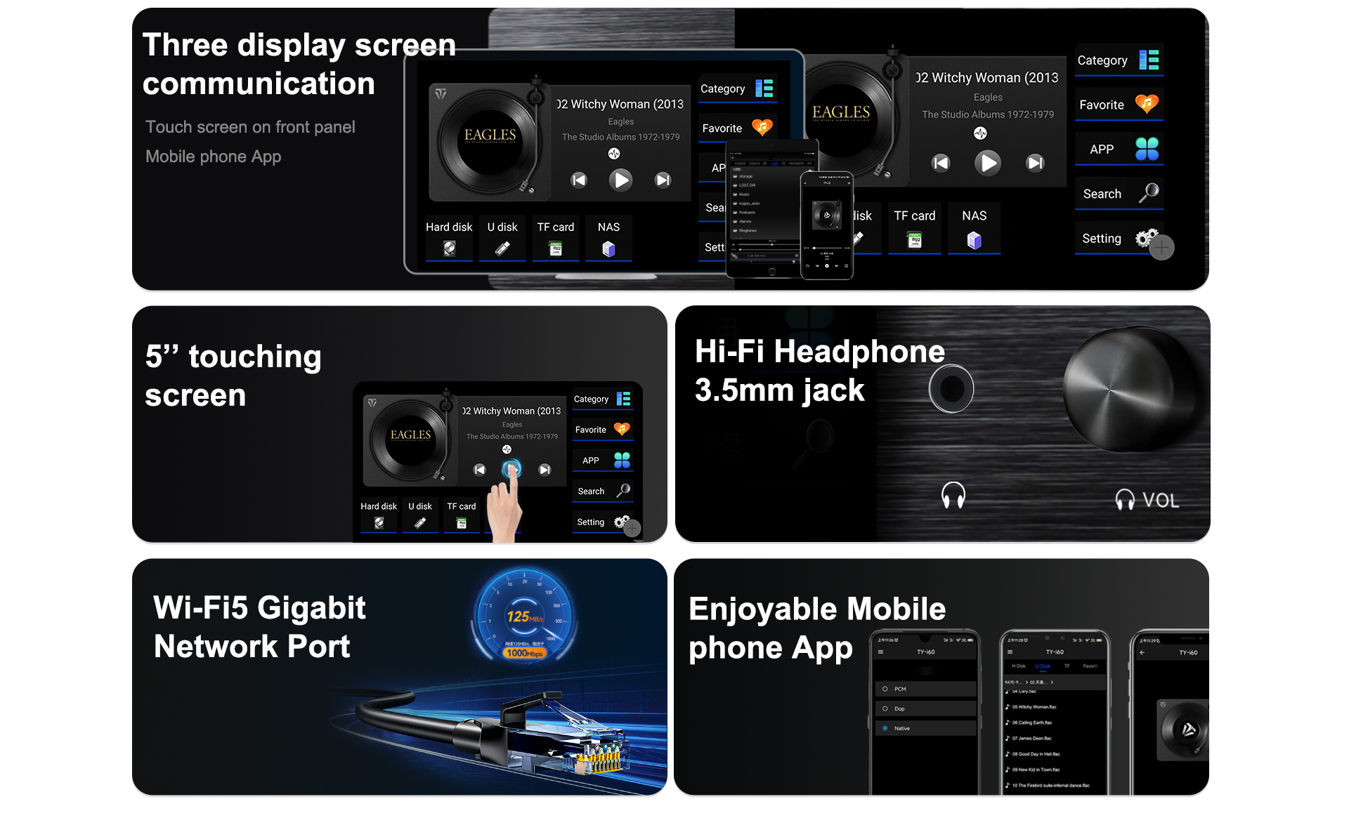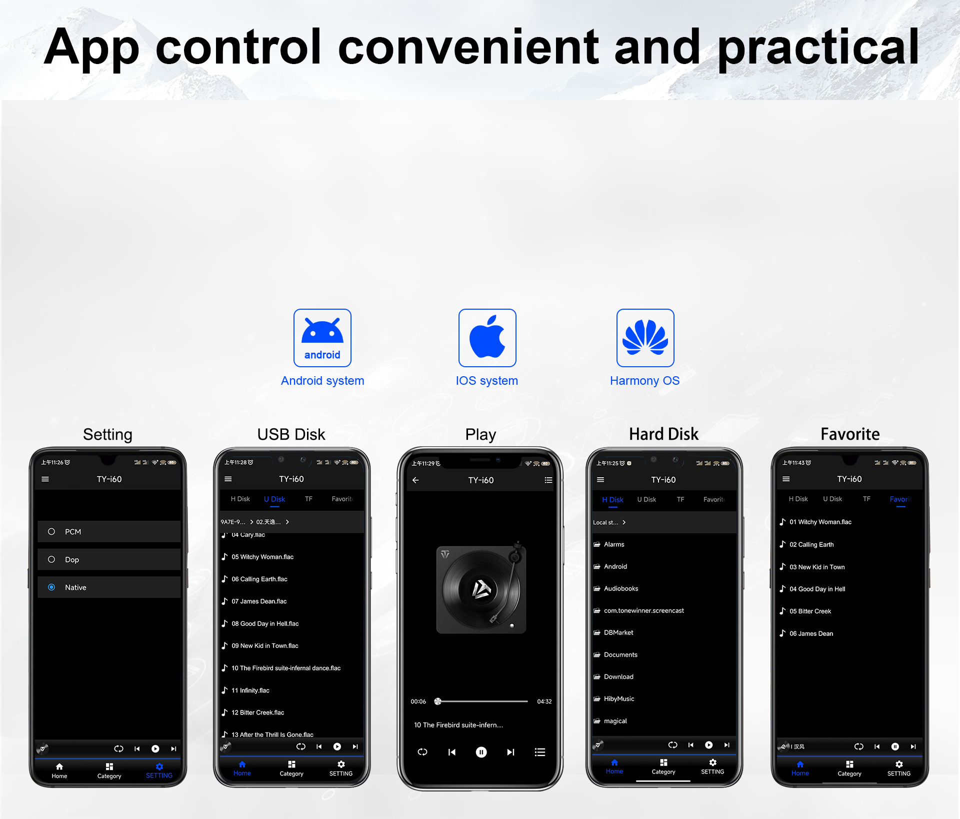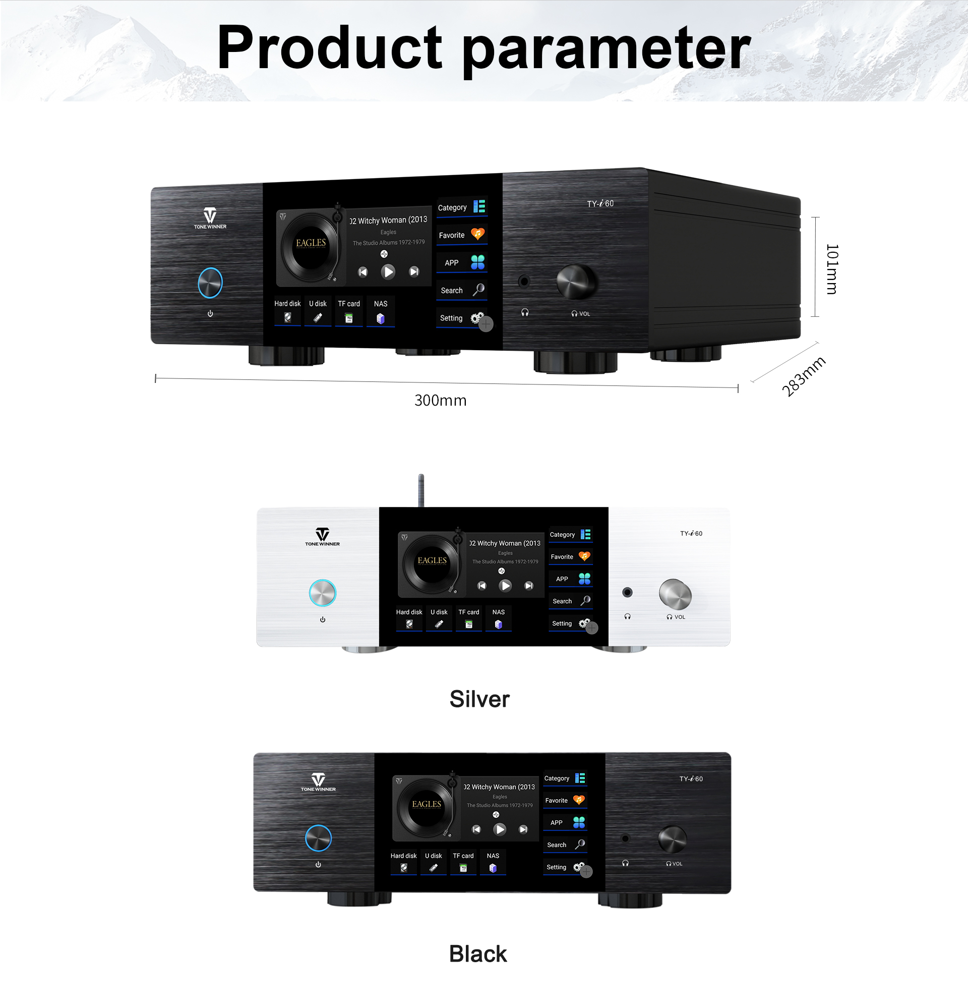 TY-i60 to wysokiej klasy cyfrowy odtwarzacz muzyki, starannie zaprojektowany przez firmę Tonewinner, wykorzystującą ponad 30 lat doświadczenia i innowacji technicznych w projektowaniu wysokiej jakości. Został zaprojektowany, aby sprostać najwyższym wymaganiom konsumentów, którzy oczekują wysokiej jakości, bezstratnej muzyki cyfrowej.