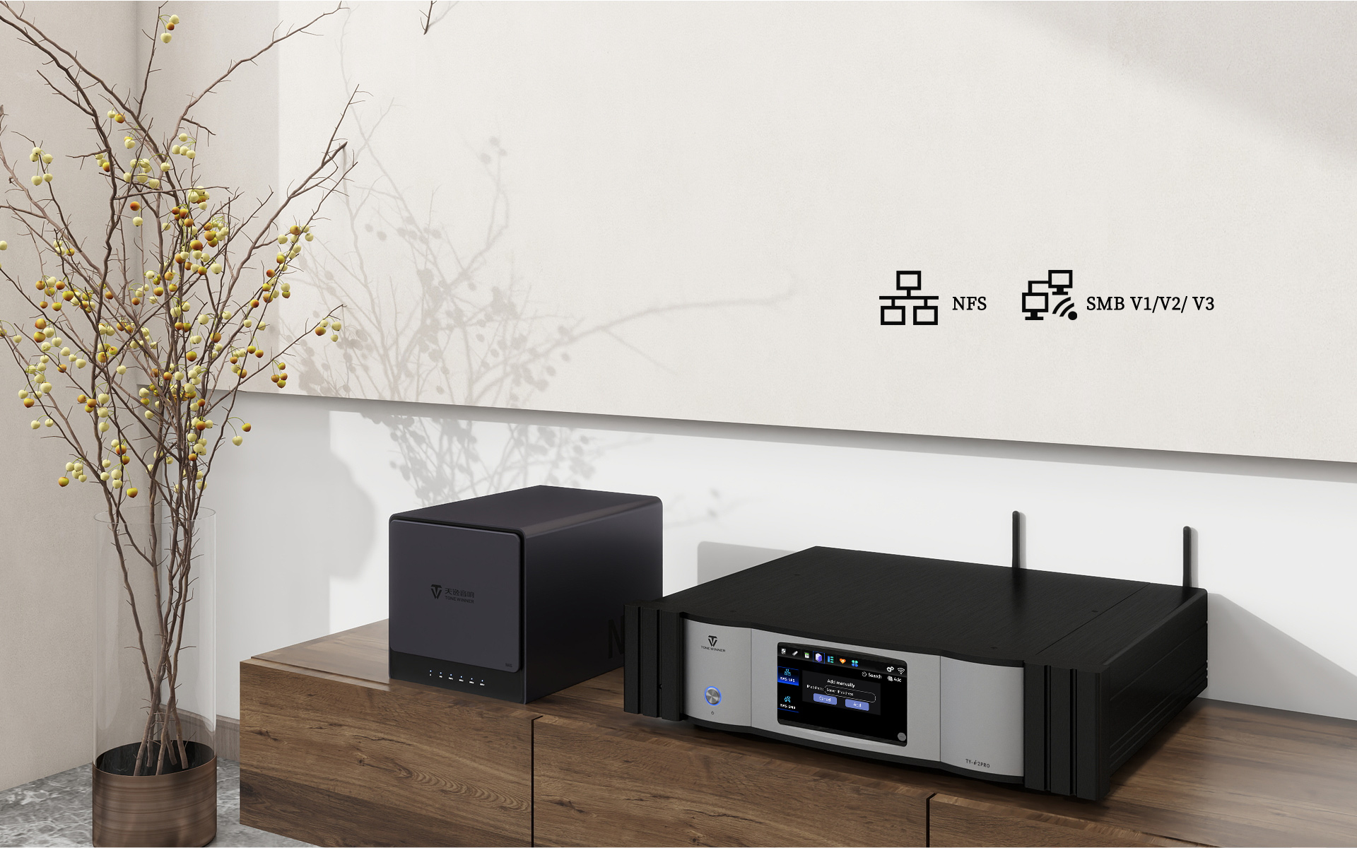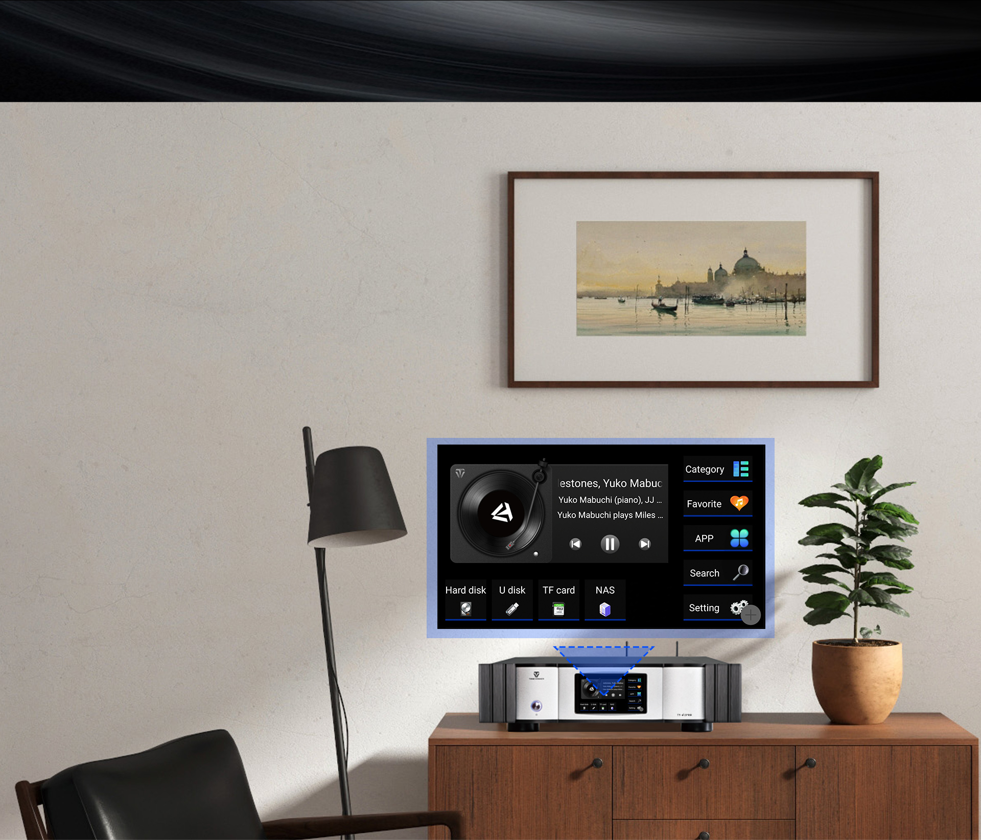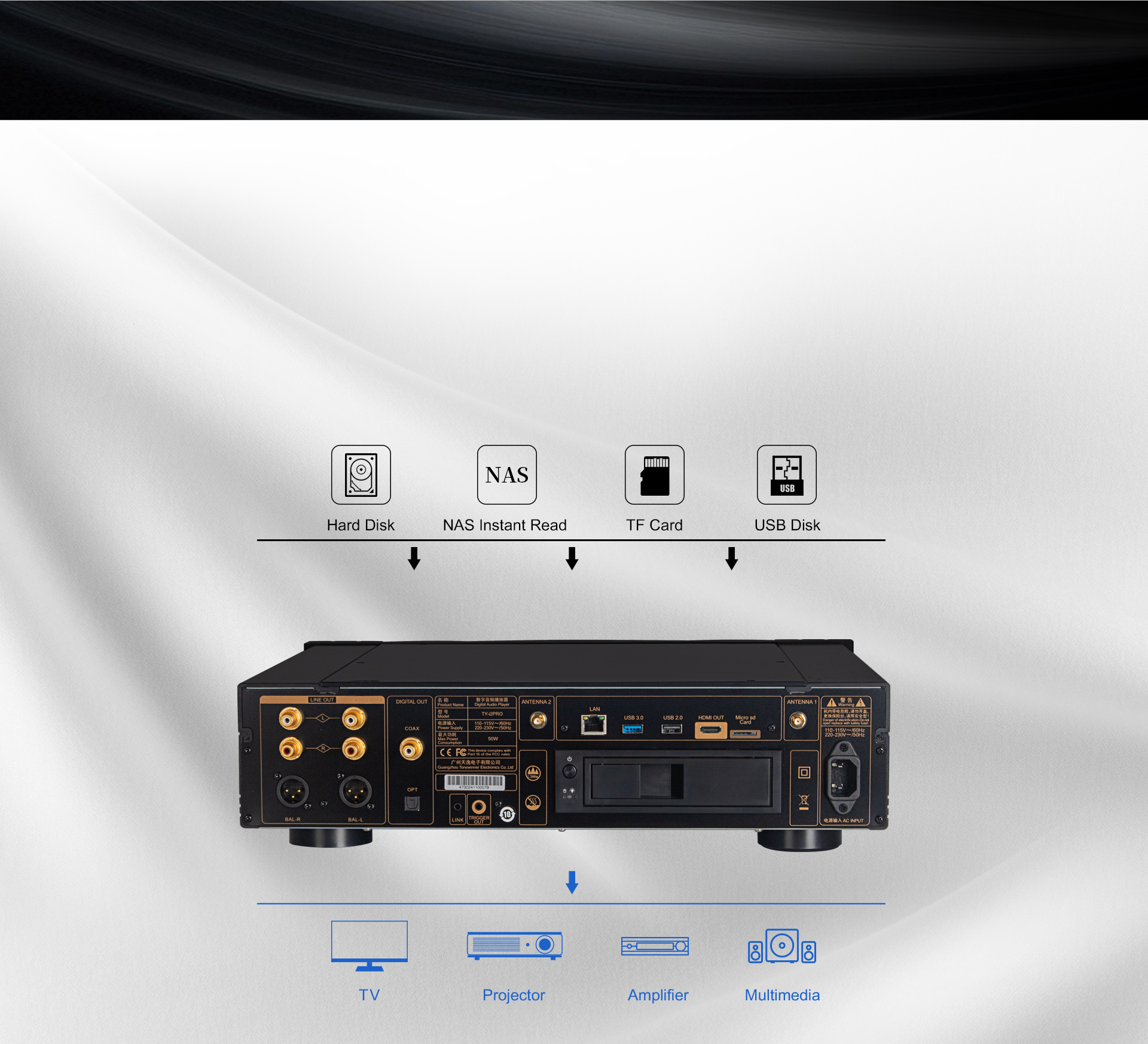 TY-i2PRO to wydajny i wszechstronny odtwarzacz strumieniowy sieciowy. Jest to odtwarzacz audio klasy Hi-Fi klasy High End. Wykorzystuje on autorską technologię Hi-Fi firmy Tonewinner, która umożliwia bezpośrednie wyprowadzanie sygnałów audio. Oznacza to, że na sygnał audio z TY-i2PRO nie wpływa zegar systemowy, a dźwięk z TY-i2PRO zachowuje bezstratną jakość dźwięku Hi-Fi.