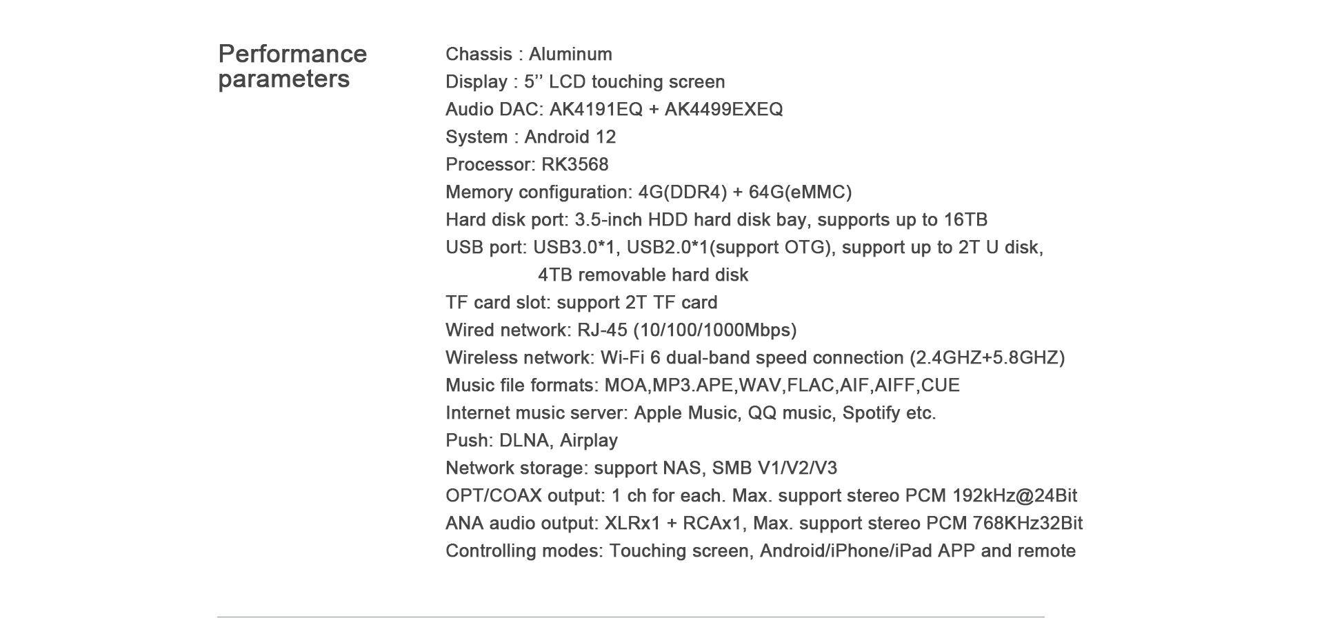 Lokalny interfejs odtwarzania: 1*USB 3.0, 1*USB 2.0 (obsługuje OTG), zatoka na dysk twardy 3,5 cala, 1*karta Micro SD;