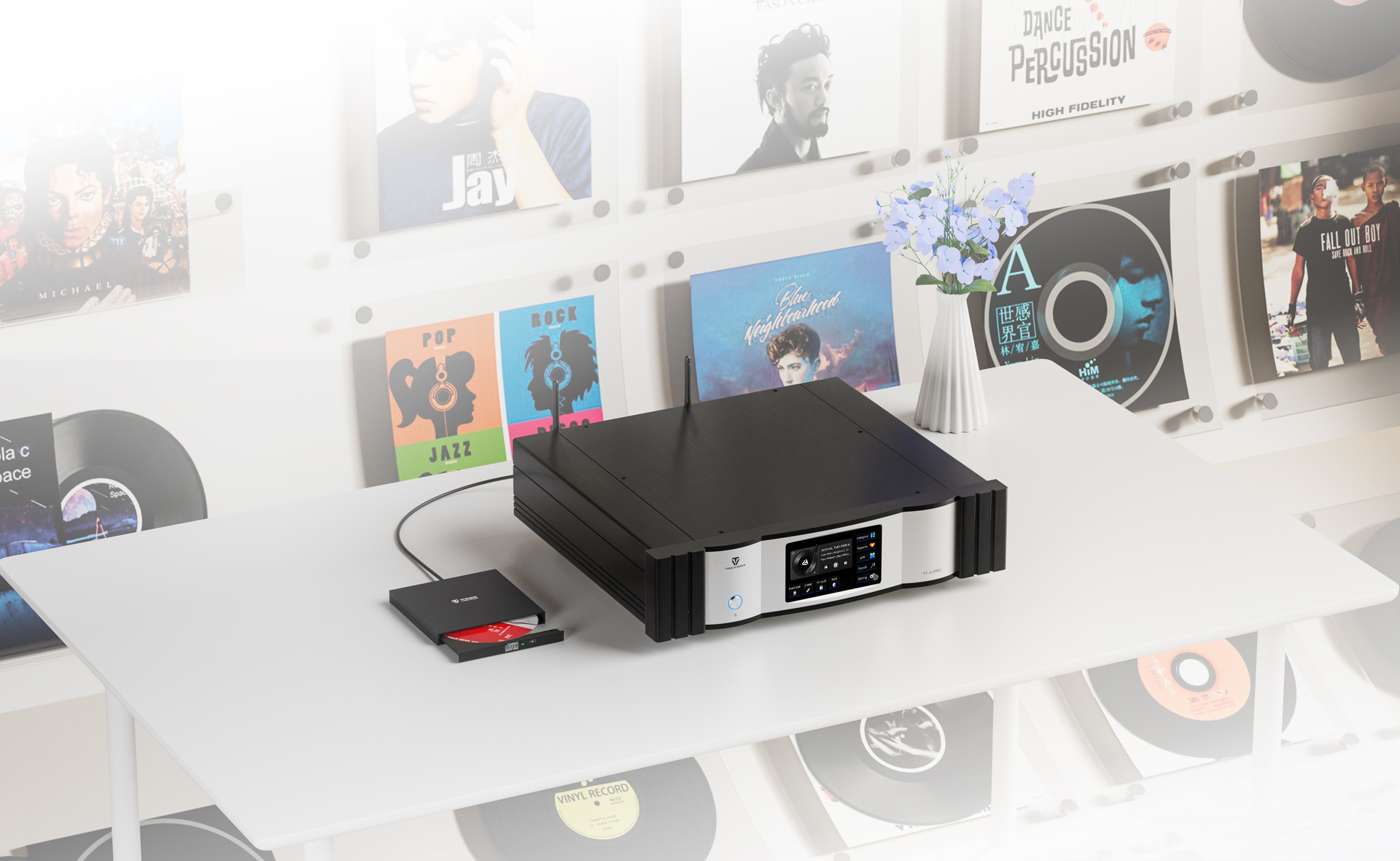 Za pośrednictwem zewnętrznego napędu optycznego USB urządzenie to nie tylko obsługuje odtwarzanie płyt CD, ale także umożliwia bezstratne zgrywanie zawartości płyt CD, modyfikowanie nazw utworów itp., automatycznie generuje informacje o albumie i wykonawcy oraz obsługuje zapisywanie na lokalnych urządzeniach pamięci masowej.