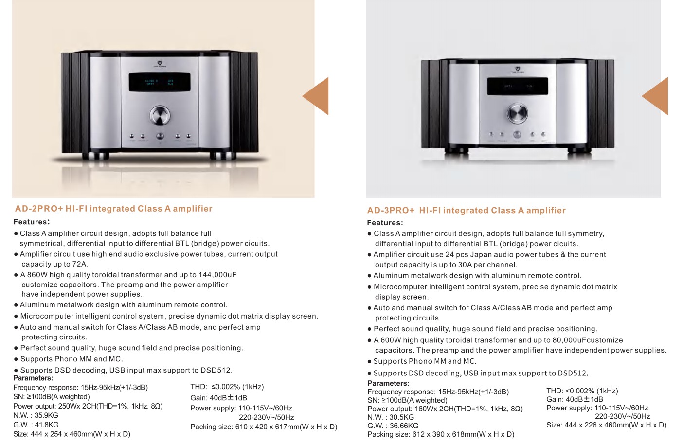 Building a high-end audio system is a journey full of choices, and one of the most crucial aspects is selecting the right amplifier. The AD-2PRO+ and AD-3PRO+ are Tonewinner's two-channel integrated amplifiers, class A full balance amplifier, similar in appearance and core technology.